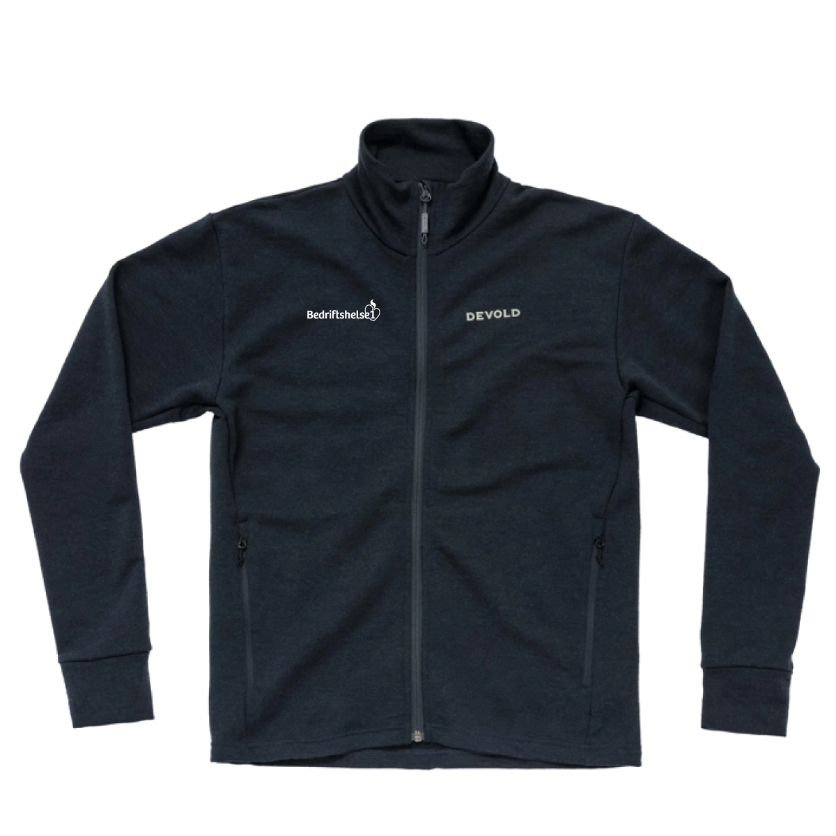 Liten kvit logo (80 mm lengde) høgre bryst.