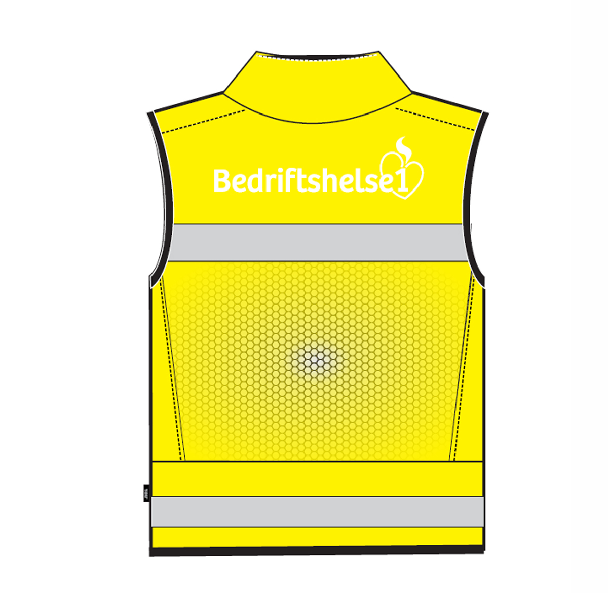 Uni vest påsydde refleksstriper som gjer deg godt synleg! Elastisk piping i ermer og linning. Mesh på ryggen for optimal ventilasjon. CE-godkjent EN 1150, klasse 1. Liten KVIT logo (80 mm lengde) venstre bryst, stor KVIT logo (230mm lengde) rygg.
