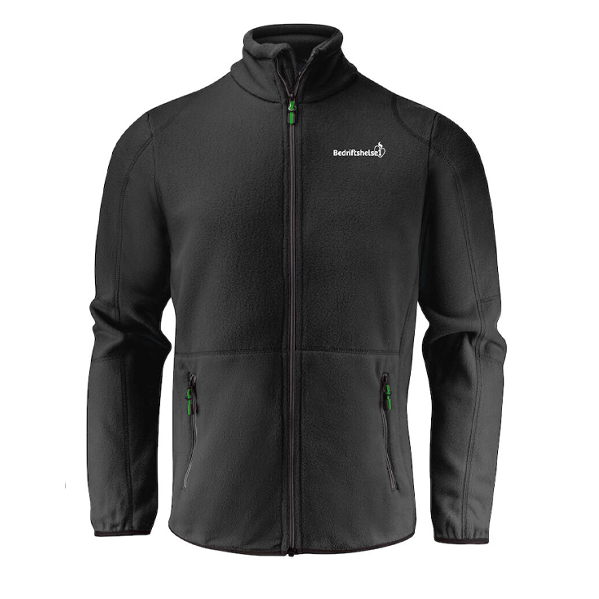 100% polyester microfleece, 280 g/m2 , 2 farga glidelås i front og på lommer.